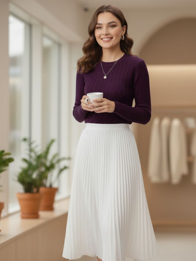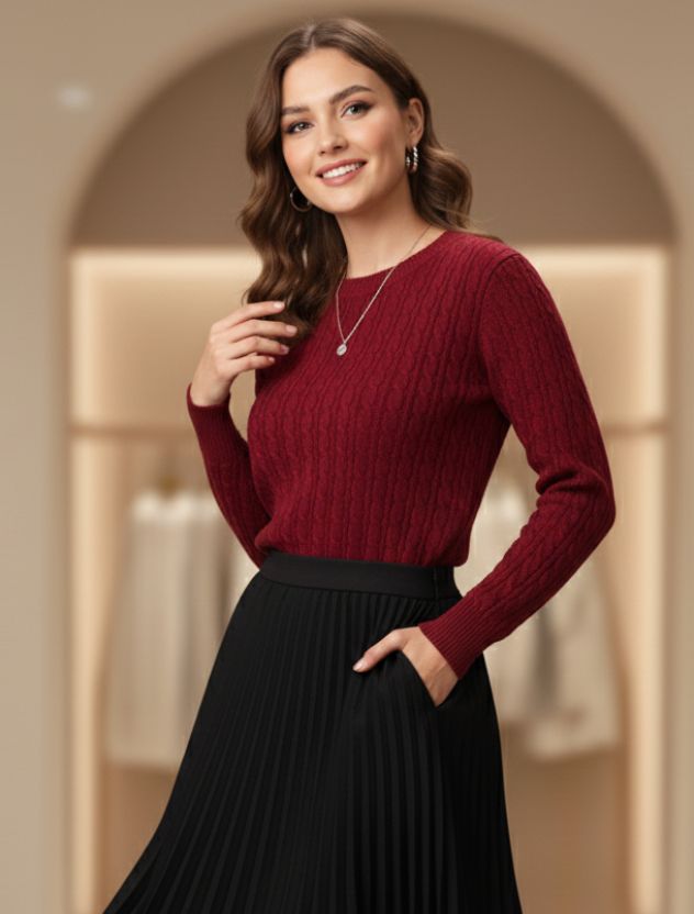 Crewneck Cable Knit Sweater.