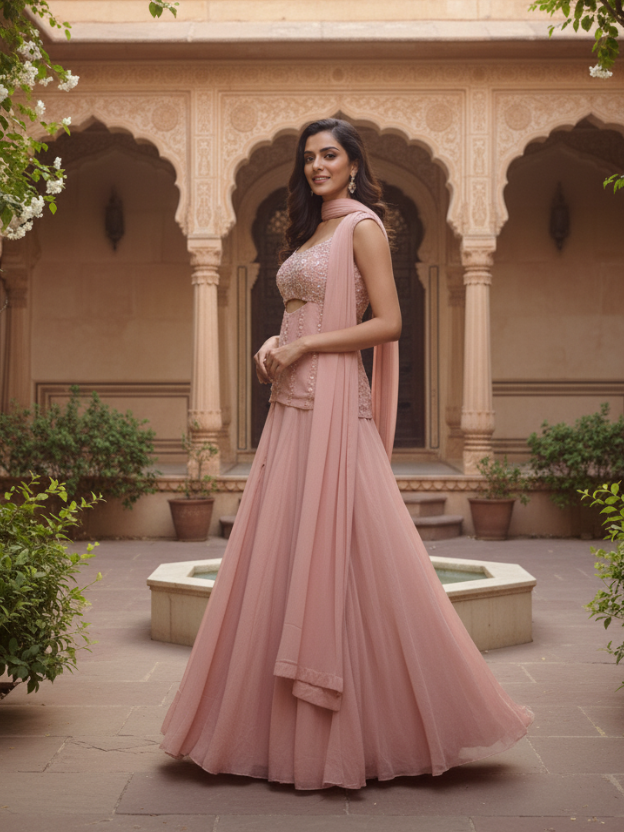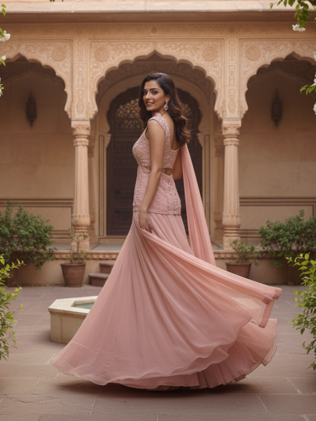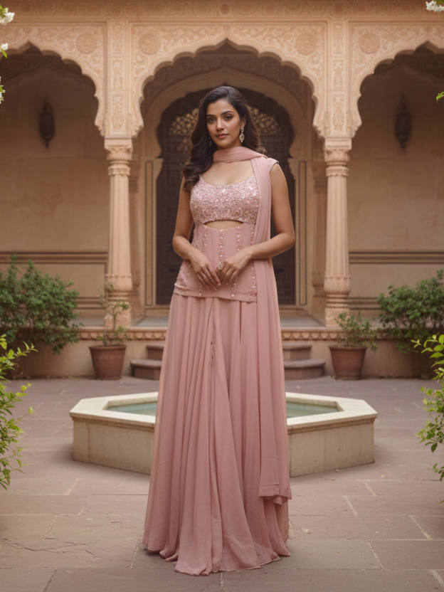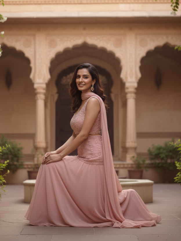 Stunning Blush Pink Sharara Set, a perfect ensemble for weddings, festive occasions, and special celebrations. This sophisticated outfit combines traditional Indian craftsmanship with a modern, flattering silhouette, making you the center of attention.