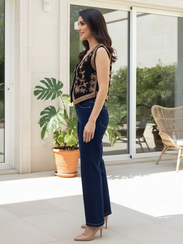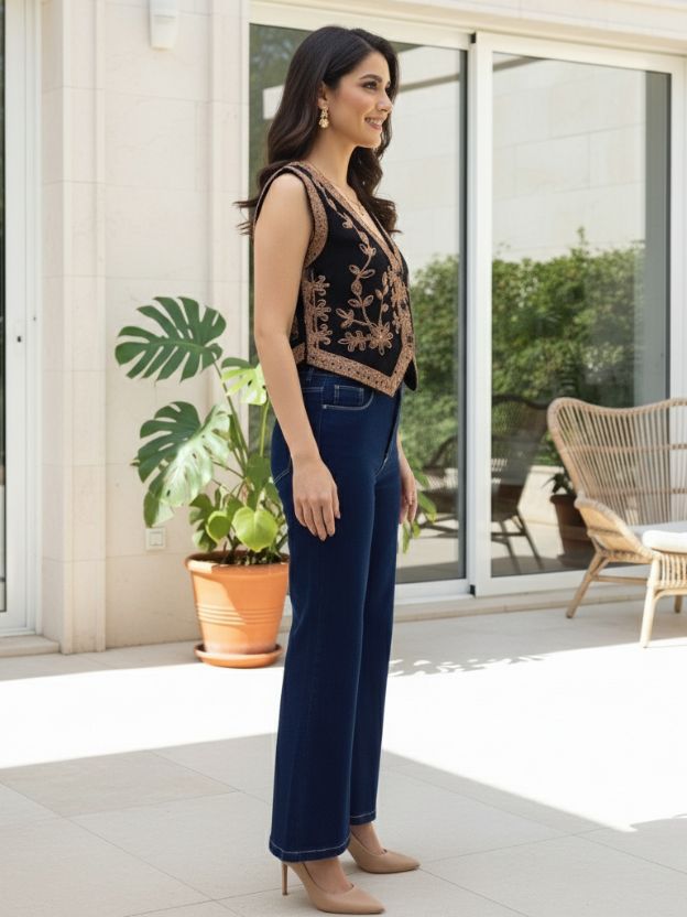 Stylish Pink & Black Women’s Brown & Black Embroidered Waistcoat